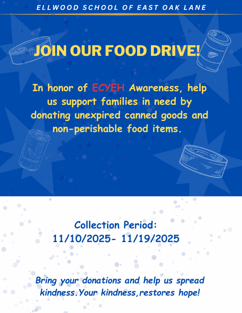 Ellwood Family, we will be engaging in a new breakfast procedure and time starting the first day of school, August 25th, @ 8:00. Historically, breakfast was served from 8:15, but with new curriculum advances and needs, we need to move the time up (8:00-before admission) to allow for more academic rigor. Fifteen minutes a day adds up! Please join us in our new procedure for Ellwood School of East Oak Lane to continue making gains!