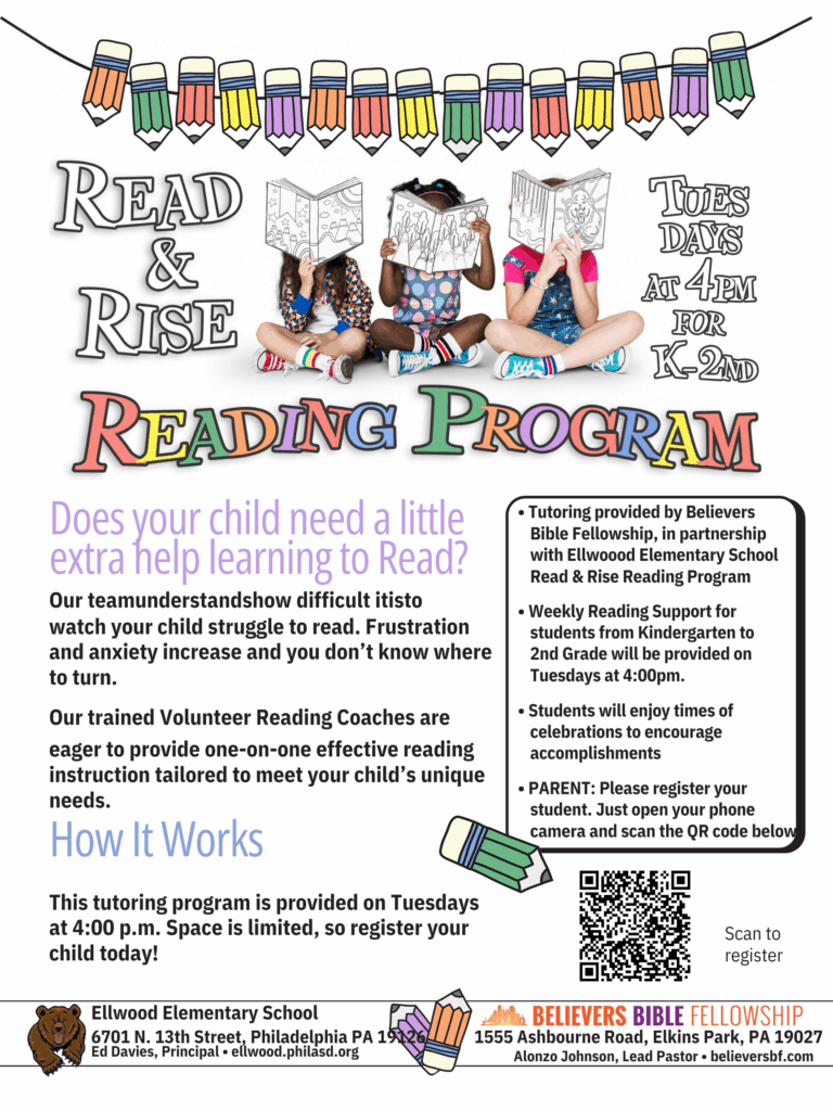 Ellwood has partnered with Believers Bible Fellowship for a Read and Rise Reading Program taking place Tuesdays at 4:00 for Kindergarten through Second Grade. Please sign up via the QR Code on the flyer.